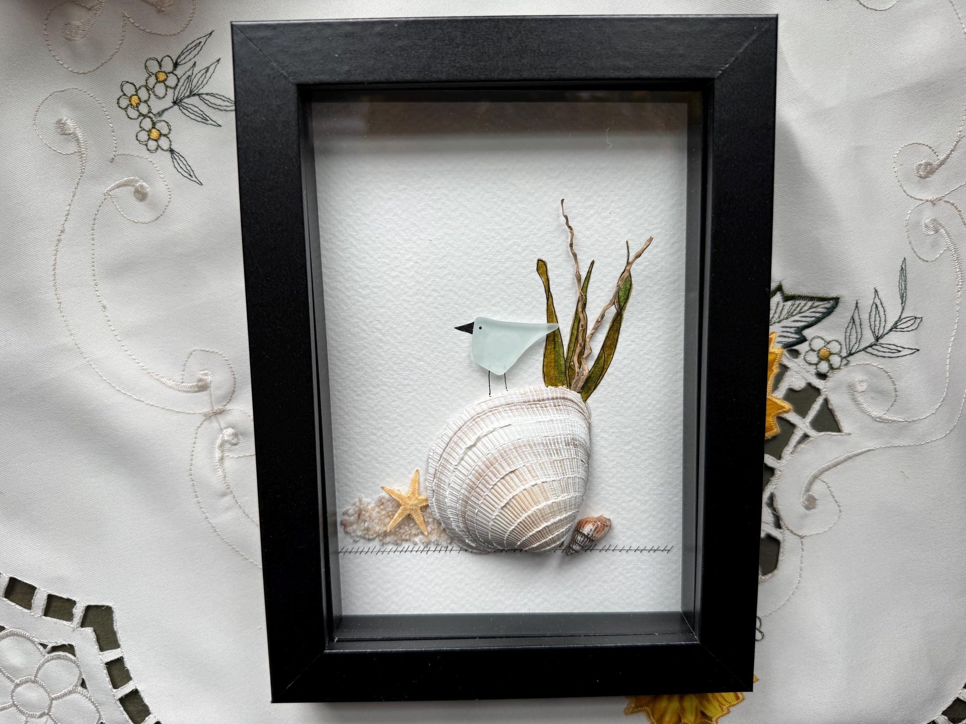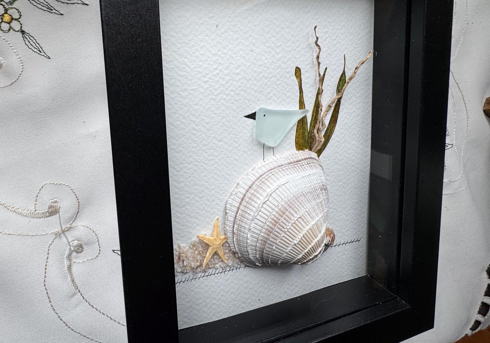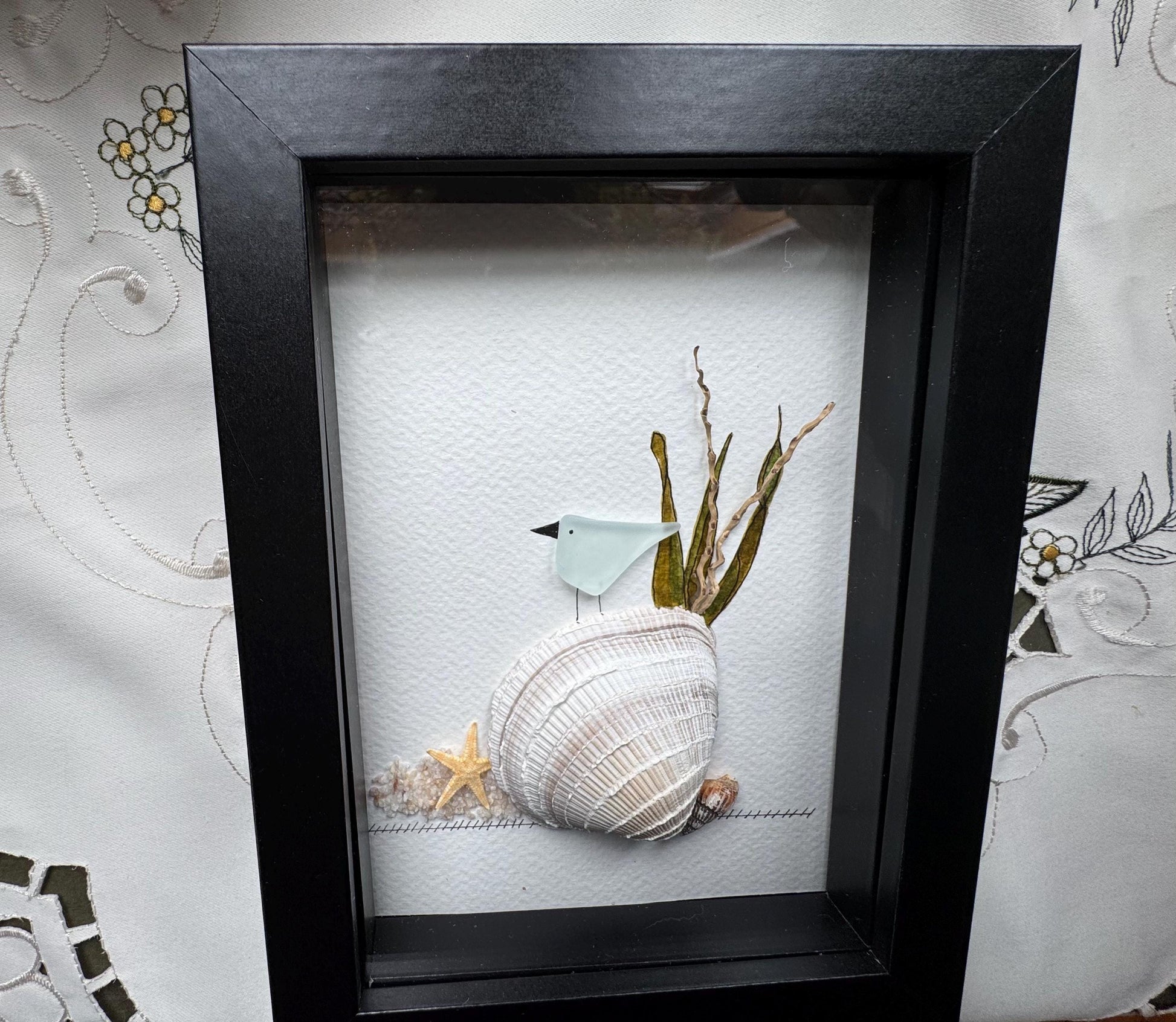 Sea Glass Pebble Art, Pebble Art Beach Scene, Gift for Her, Friendship Gift, Seaglass Picture, Beach Decor