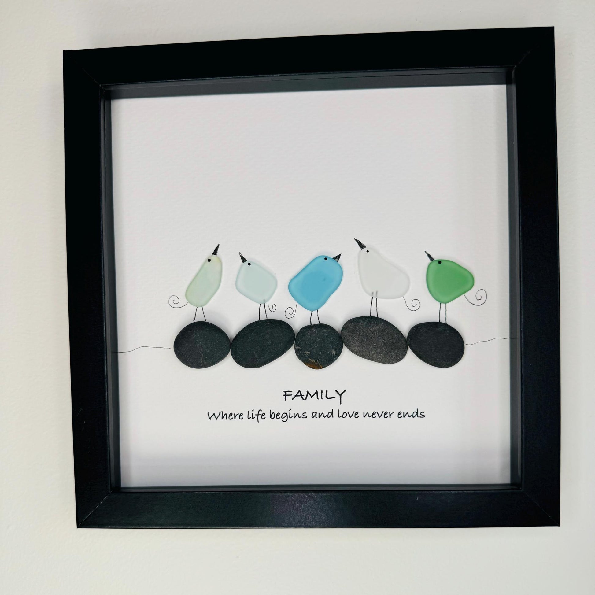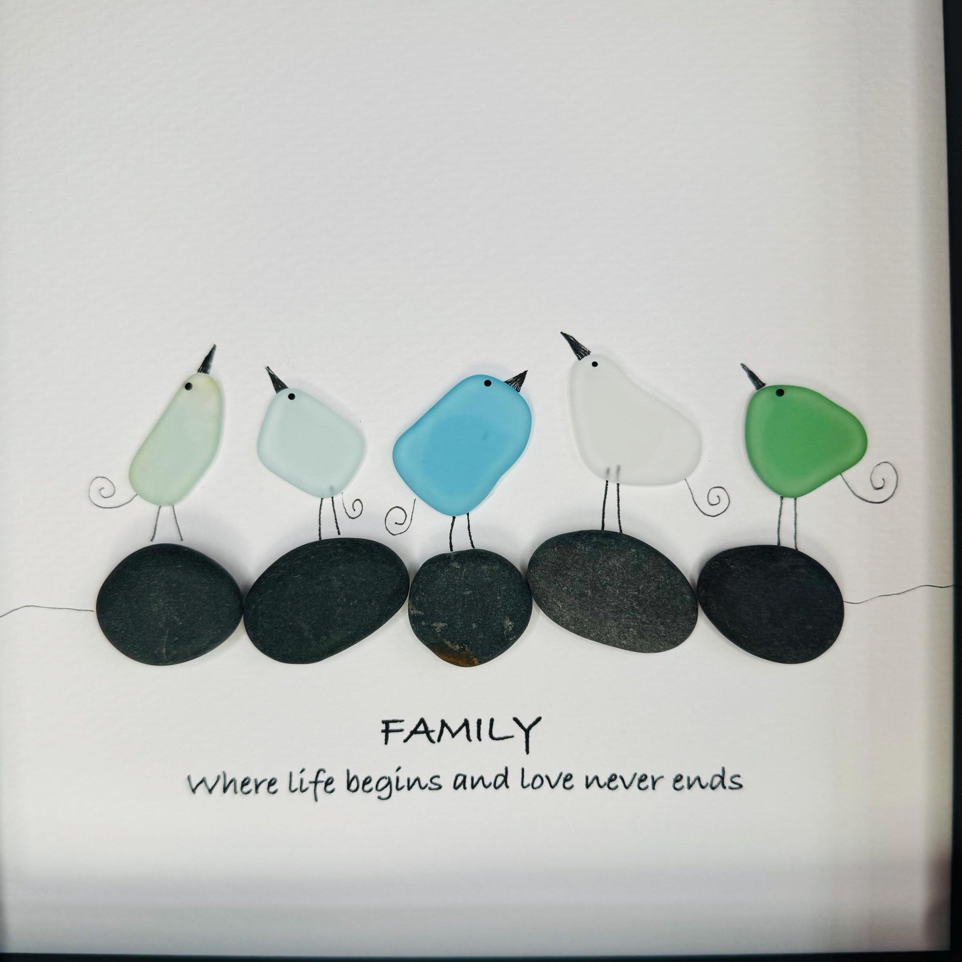 Sea Glass Pebble Art, Pebble Art Birds, Gift for Her, Family Gift, Seaglass Picture, Bird Lover Gift