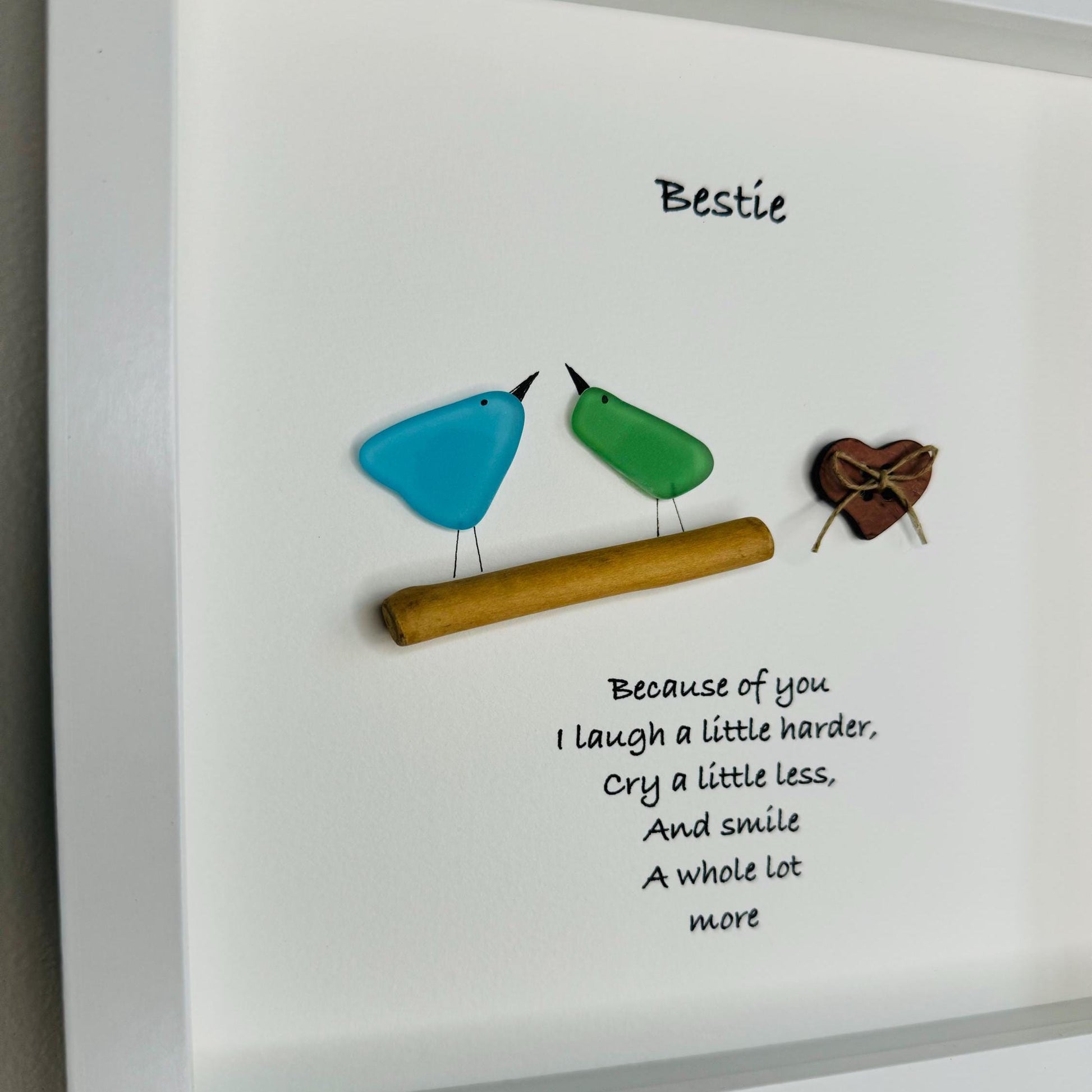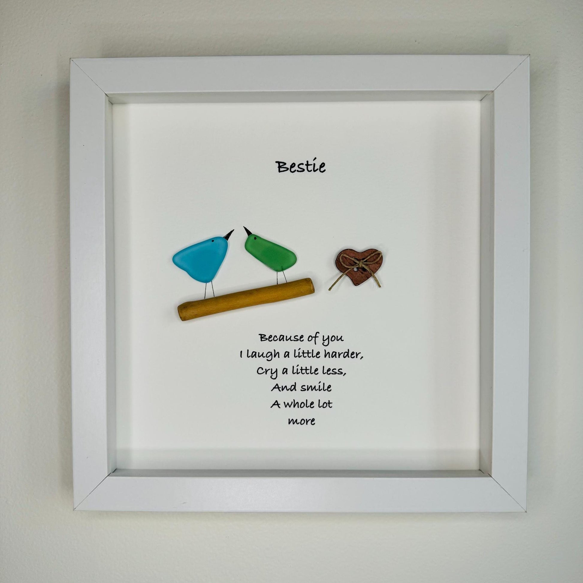 Sea Glass Pebble Art, Pebble Art Birds, Gift for Her, Friendship Gift, Seaglass Picture, Bird Lover Gift