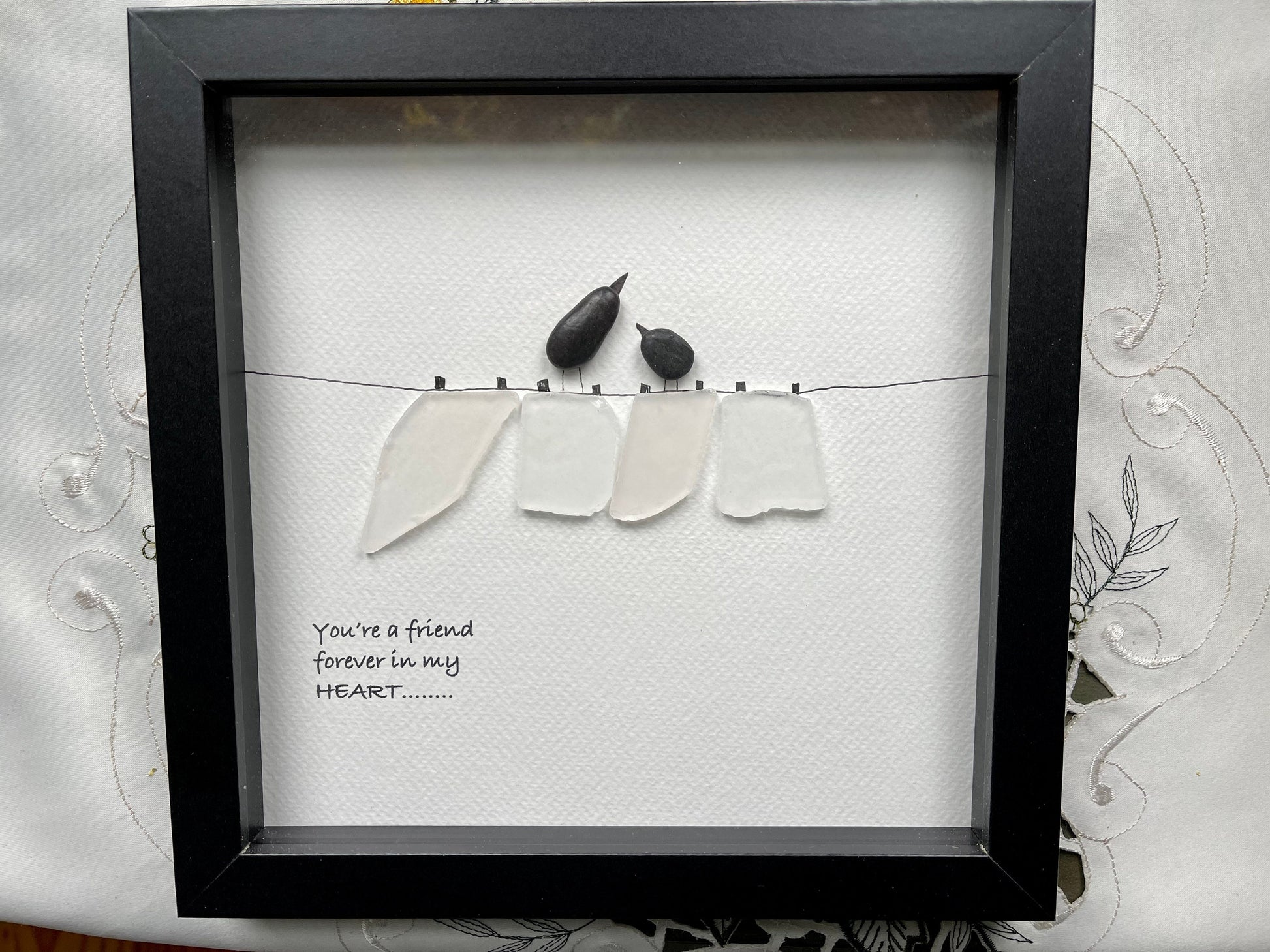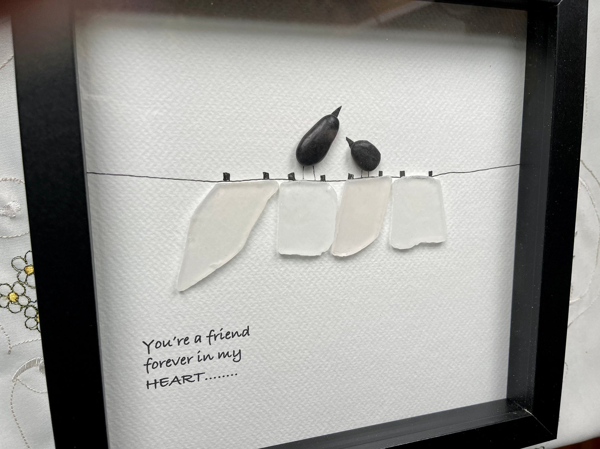 Sea Glass Pebble Art, Pebble Art Birds, Gift for Her, Friendship Gift, Seaglass Picture, Bird Lover Gift